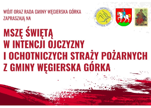 Wójt oraz Rada Gminy Węgierska Górka zapraszają na Mszę Świętą w intencji Ojczyzny i Ochotniczych Straży Pożarnych z Gminy Węgierska Górka, która odbędzie się 3 maja 2024 r. o godz. 11:00 w Kościele pw. Przemienienia Pańskiego w Węgierskiej Górce.